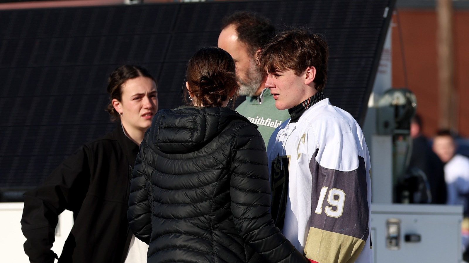 Dad and mom and gamers congregate close to the Lynch Enviornment in Pawtucket, R.I., after a taking pictures on the ice rink, Feb. 16, 2026.
