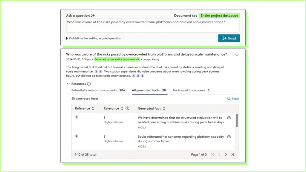 Deep Dive, which the corporate had beforehand code-named “Venture Question,” permits authorized groups to question whole doc corpuses in seconds utilizing pure language questions. The instrument synthesizes solutions grounded in information extracted from particular paperwork, offering citations and entry to underlying supply supplies for verification.