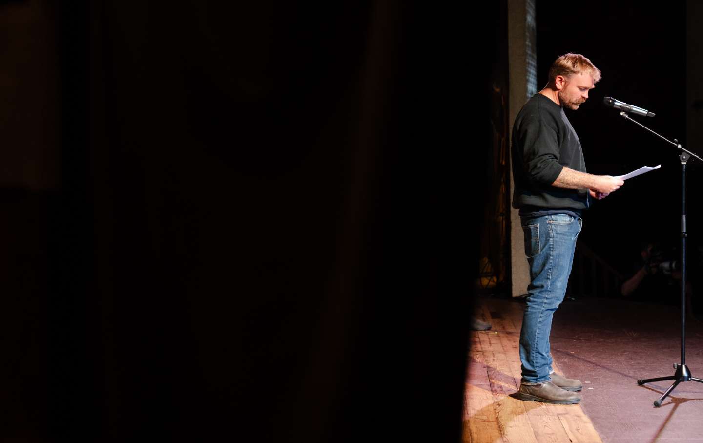 Democratic Senate candidate Graham Platner speaks at a city corridor in Ogunquit, Maine.
