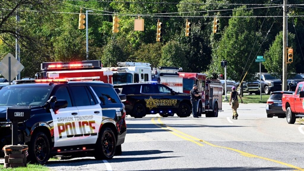 Legislation enforcement and fireplace personnel stand close to the nook of McCandlish and Holly highway, close to a capturing that befell at The Church of Jesus Christ of Latter-day Saints, Sunday, Sept. 28, 2025, in Grand Blanc, Mich.