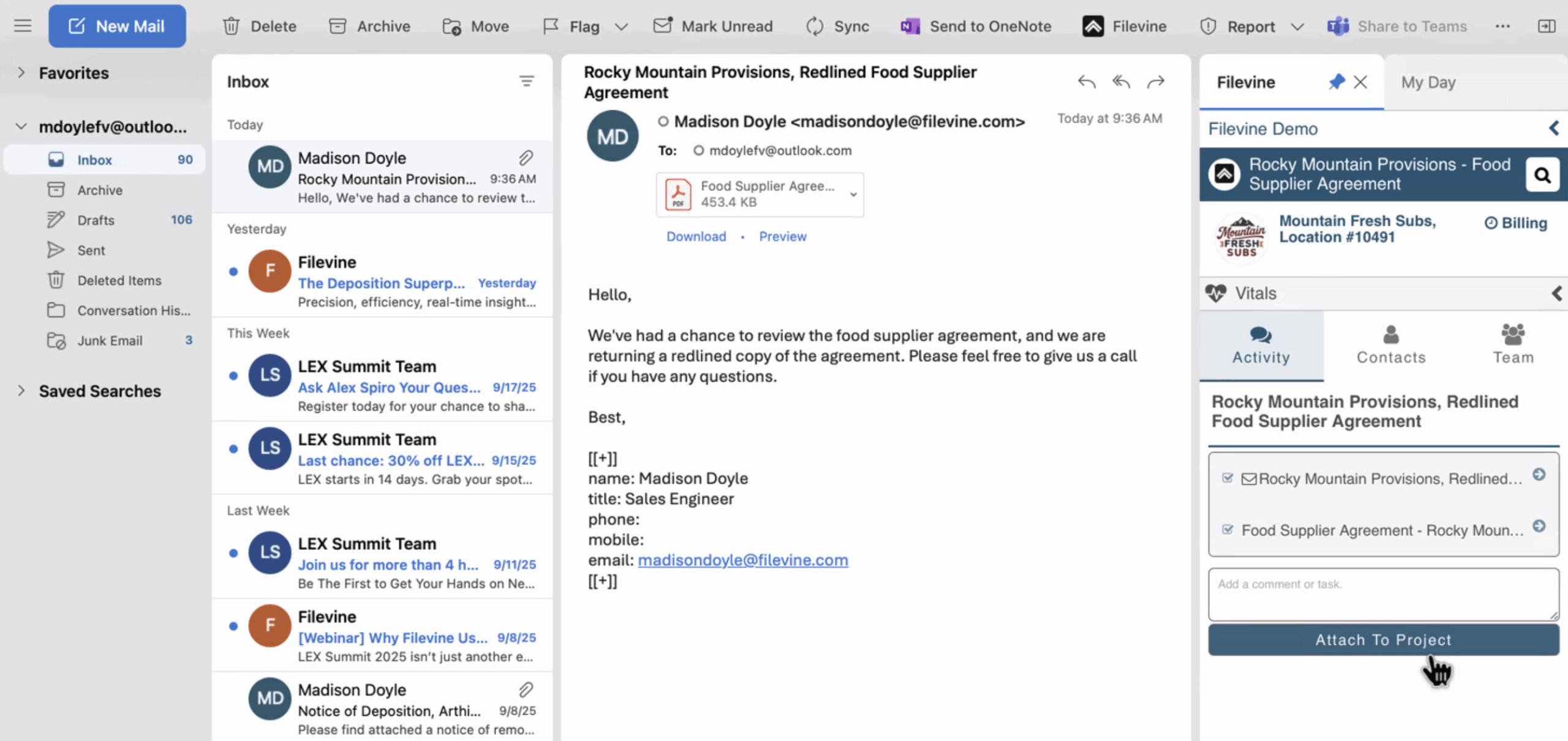For many legal professionals, the day begins in Outlook. That’s why Filevine constructed its hottest consumption function as an e mail plugin. It scans an incoming attachment, captures all its particulars and robotically populates the information into the right discipline.