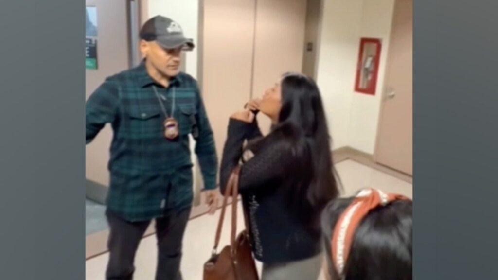 Within the video reviewed by ABC Information, a lady may be heard pleading with the agent as her husband is being detained, saying “you do not care about something.” The agent may be heard repeatedly saying “Adios” earlier than immediately shoving the girl up towards a wall and inflicting them to fall to the bottom. The agent can then be seen standing over her as her crying kids encompass the girl.