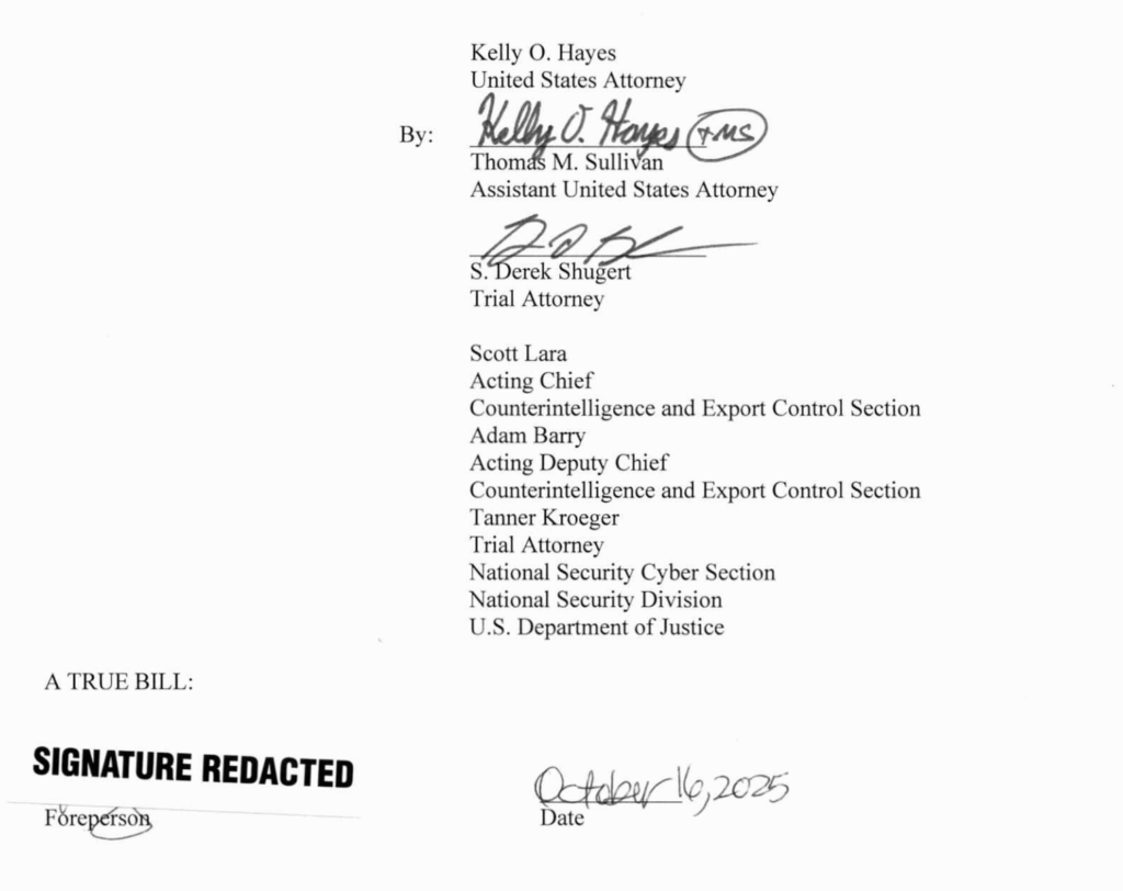Bolton’s indictment is signed by the extremely competent US Lawyer for Maryland, Kelly Hayes, Thomas Sullivan, Chief of the District’s Nationwide Safety and Cybercrime Part, plus 4 extra legal professionals: