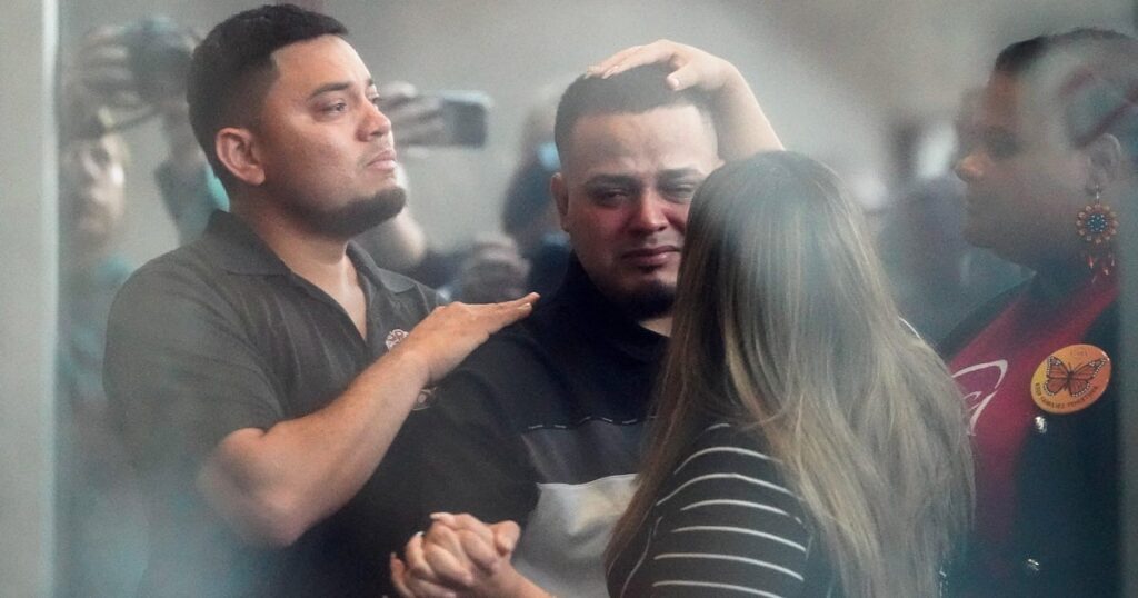 Abrego Garcia was free of pretrial detention final Friday. CBS Information reported on Saturday that his attorneys had been then despatched a court-required discover of his potential deportation to Uganda. He arrived on the ICE facility on Monday morning to examine in, talking in Spanish to supporters who had gathered in a present of help exterior of the power.
