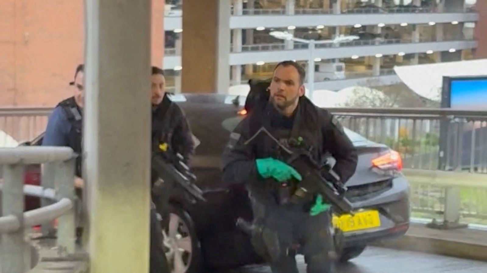 Cops reply following an incident at Heathrow Airport, as seen by a automobile windscreen, in London, Britain, Dec. 7, 2025, on this screengrab obtained from a social media video.