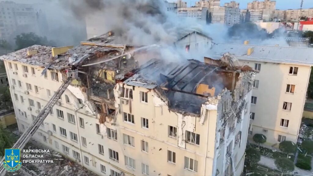 Serhiy Bolvinov, the top of Kharkiv Nationwide Police’s investigations unit, mentioned in a submit to Fb that 5 Shahed strike drones hit an condominium constructing at daybreak.