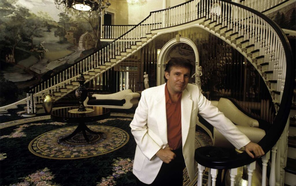 Donald Trump, actual property mogul, poses within the lobby of his residence in August 1987 in Greenwich, Connecticut.