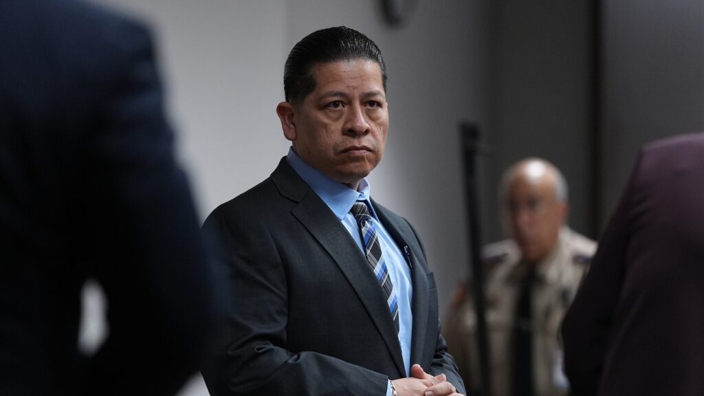 Former Uvalde college district police officer Adrian Gonzales arrives within the courtroom on the Nueces County Courthouse in Corpus Christi, Texas, Tuesday, Jan. 6, 2026.