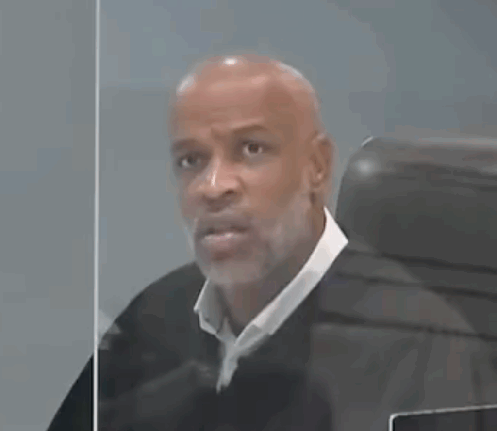 “Uh, uh, okay.” Resignation meets resilience because the choose buries the lingering reminiscences of the occasion and pivots to name upon the lady we assume to be the prosecutor (who isn’t proven within the clip… one other symbolic nod to the intangible and but ever current nature of the state? Concurrently inside the chat and but with out as she floats above and untouched by this — to attract upon Lacan — encounter with the Actual.)