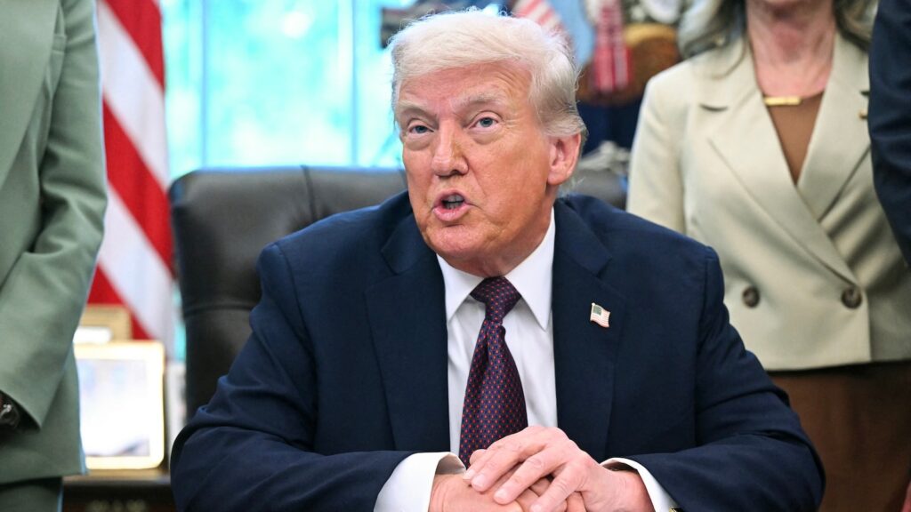 President Donald Trump speaks within the Oval Workplace of the White Home in Washington, September 15, 2025.